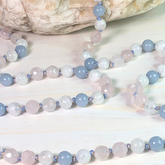 Rose Quartz, Moonstone, and Angelite Mala