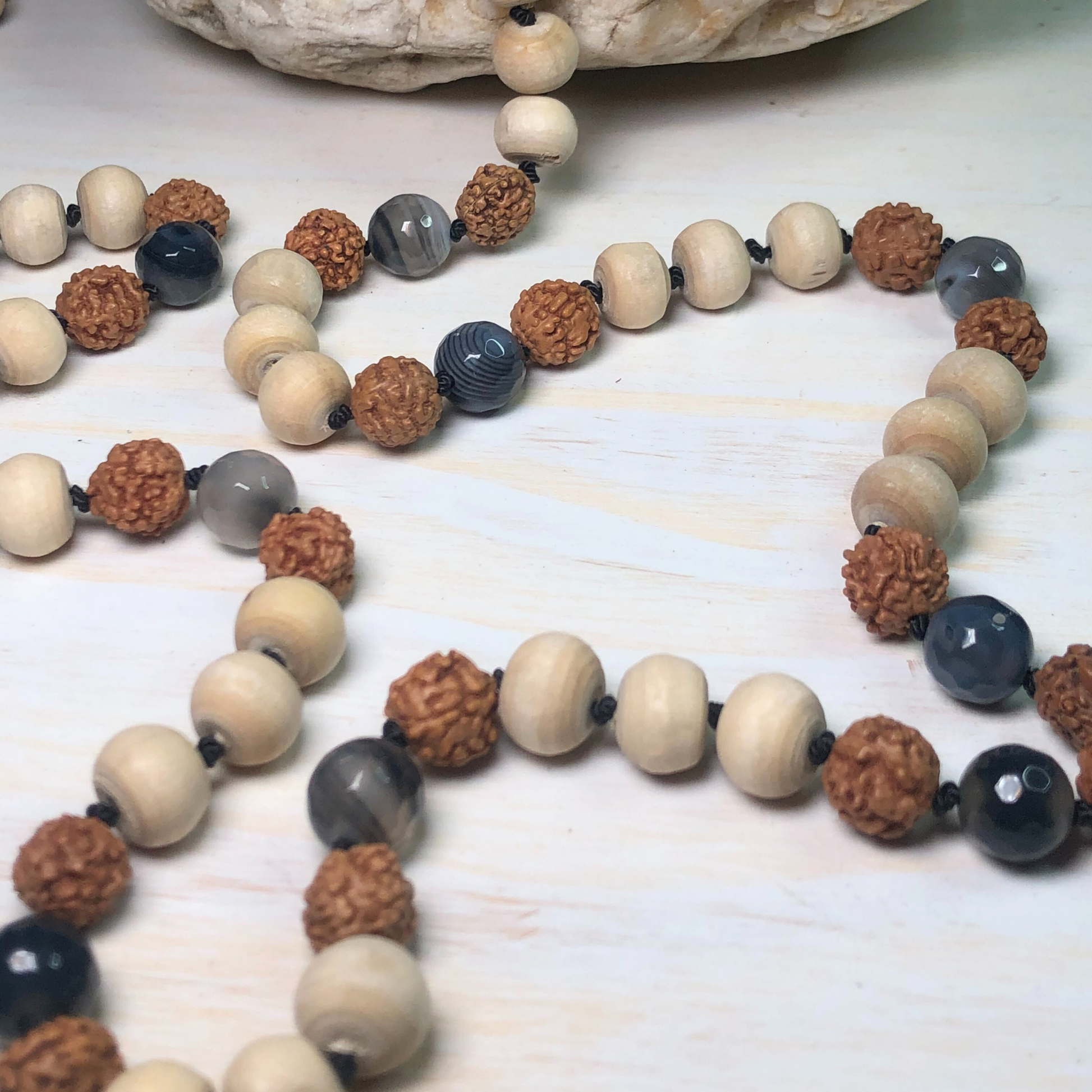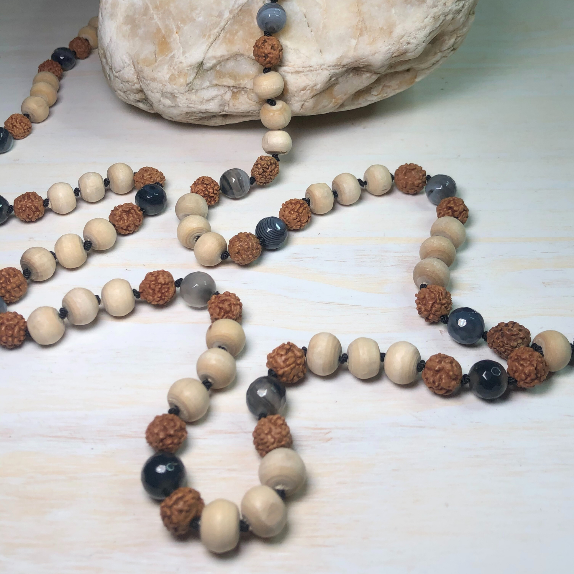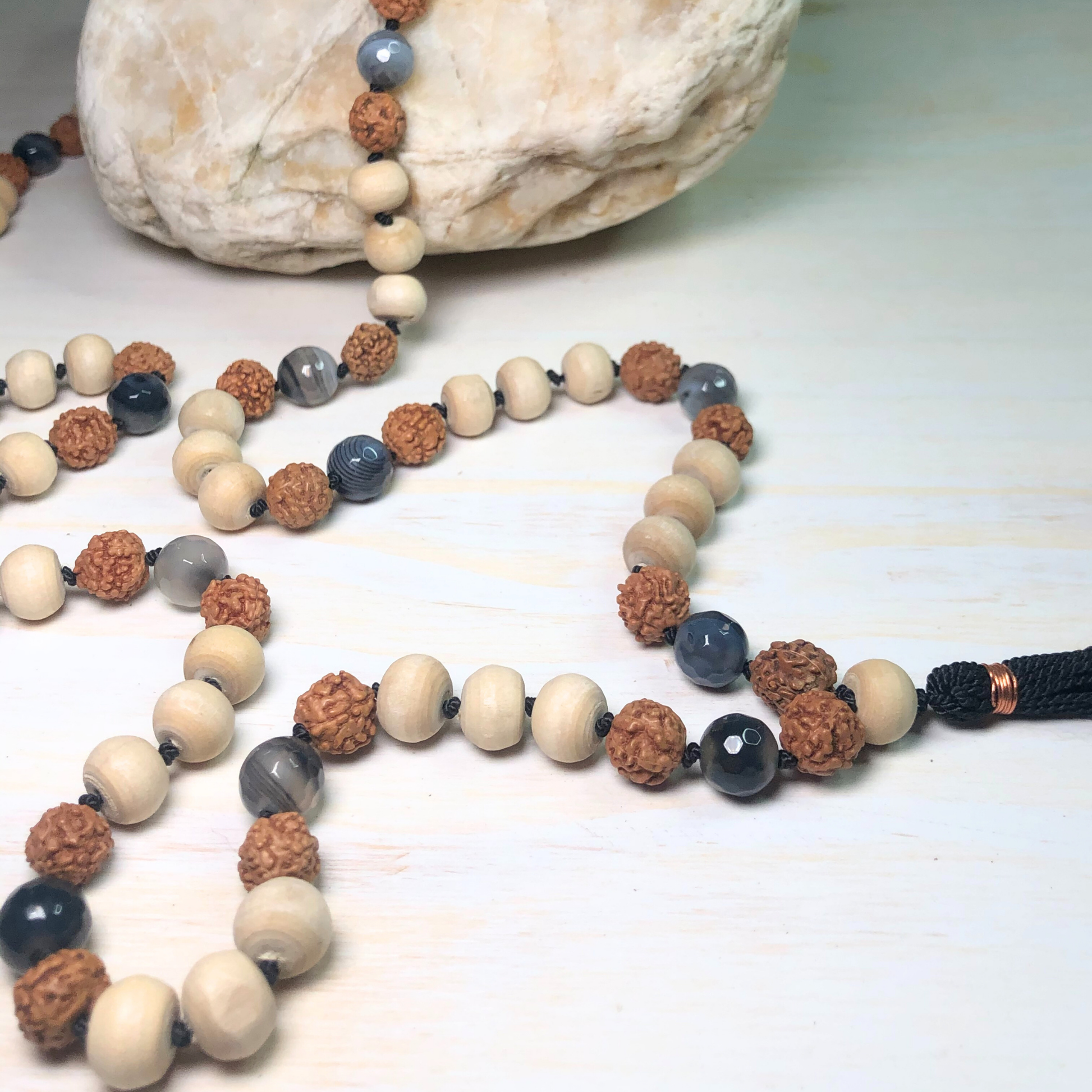 Black Striped Agate, Rudraksha & Tulasi Mala