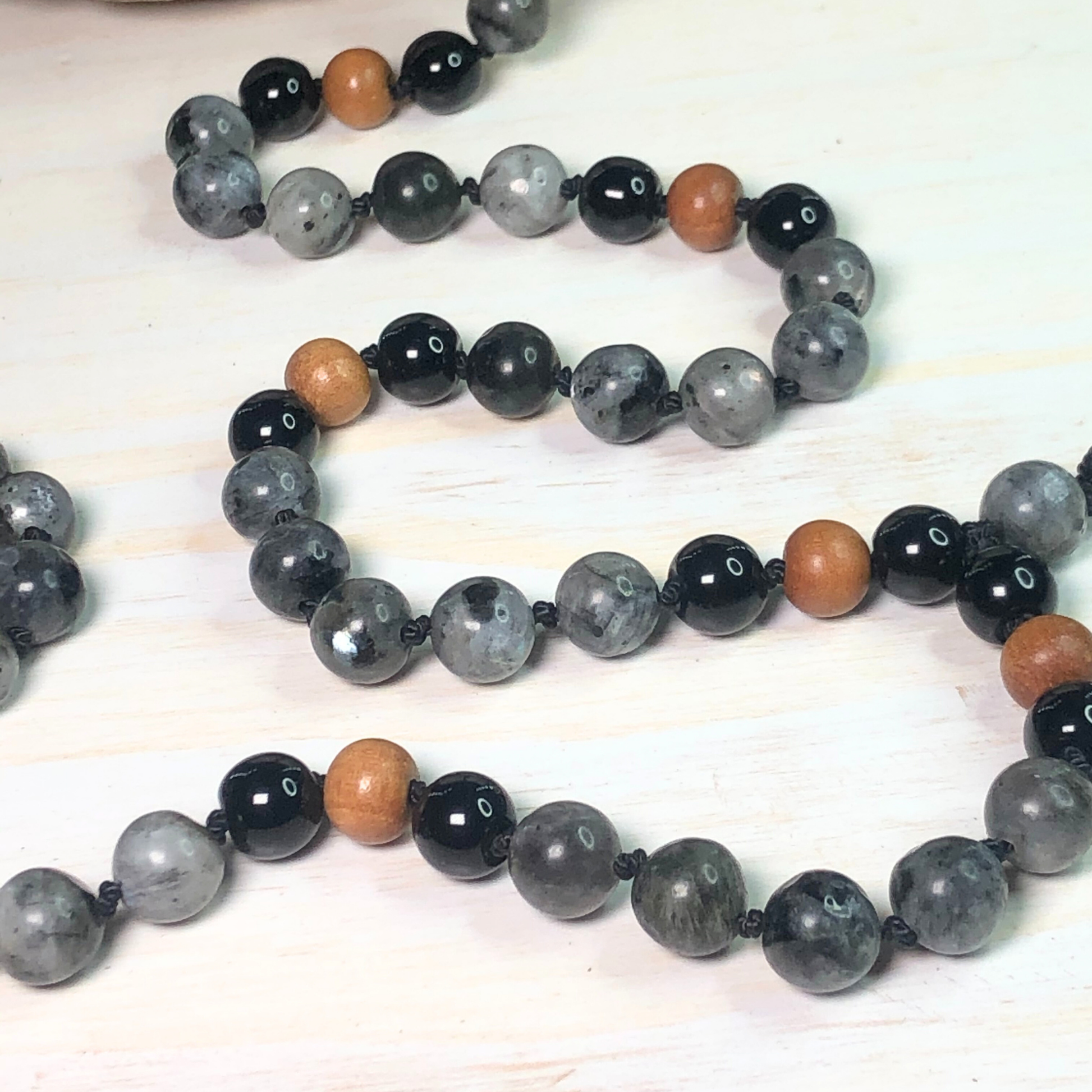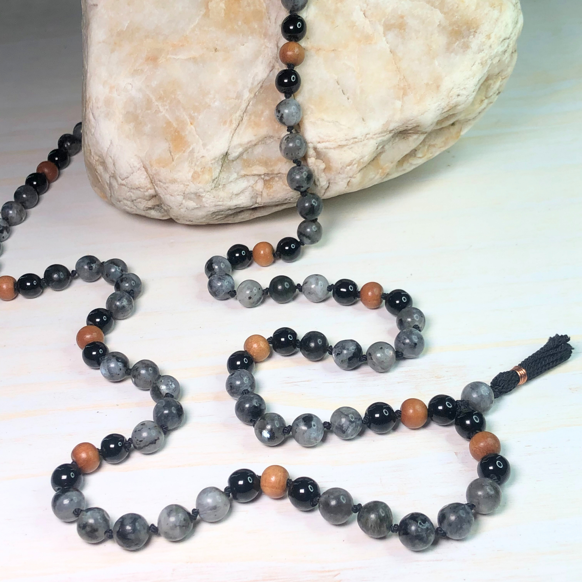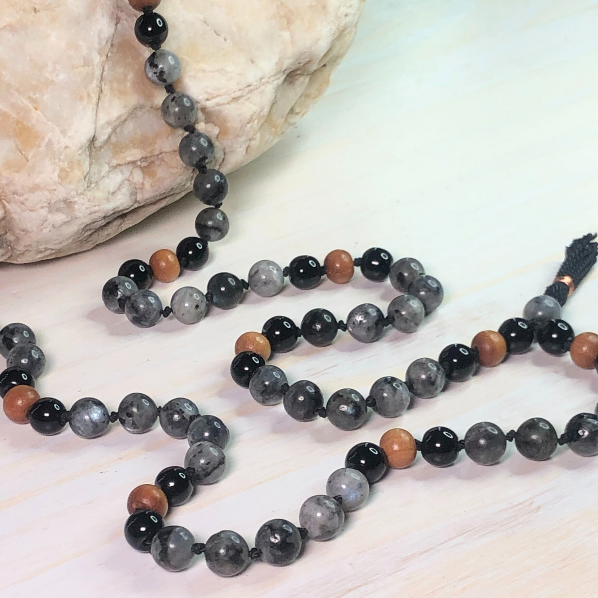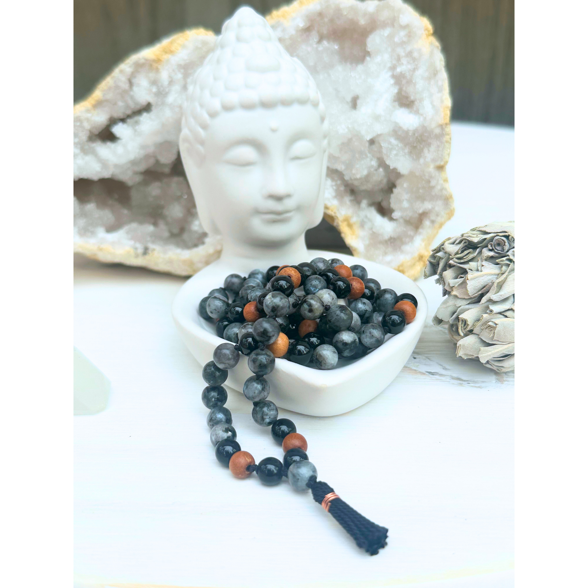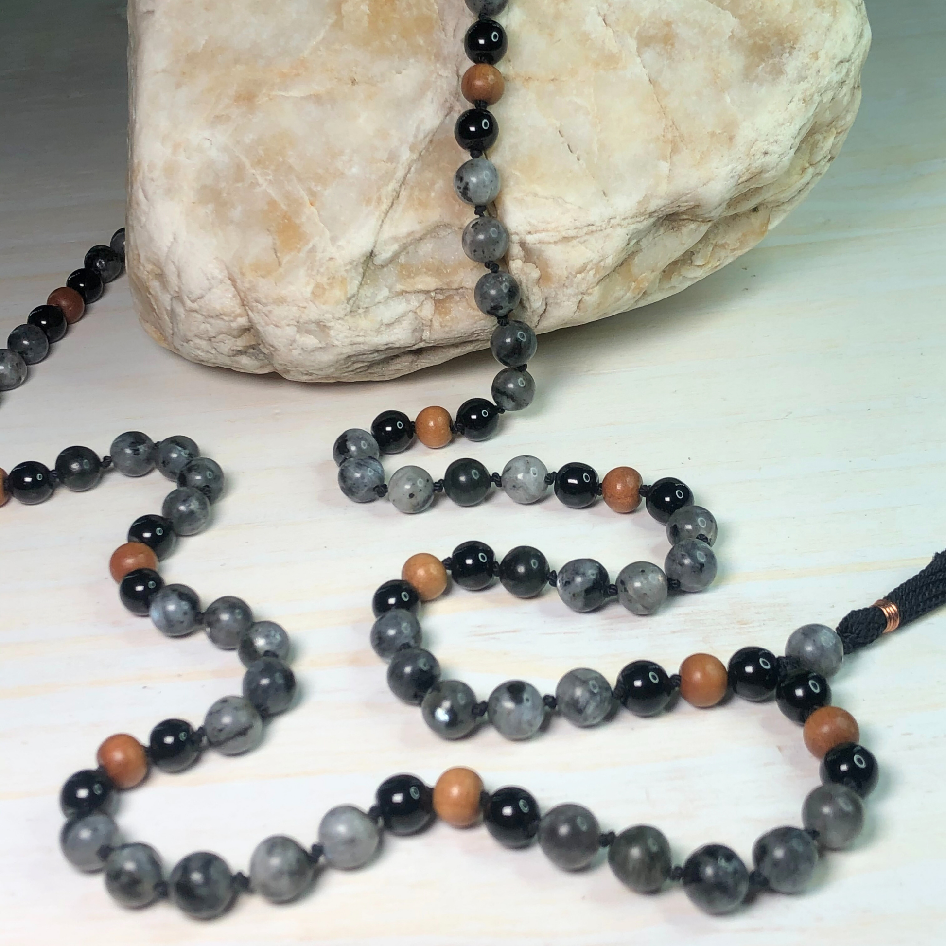 This mala was created with intentions of stability, grounding, and tranquility. It will help dissolve negativity and release any overwhelming fears or worries, while promoting relaxation.